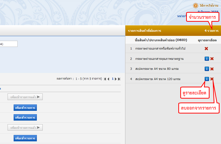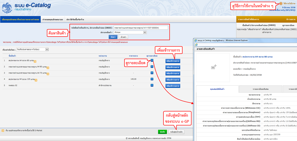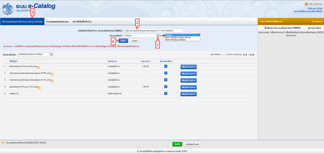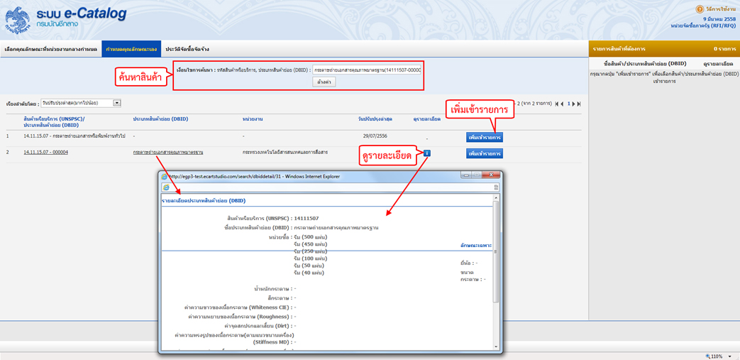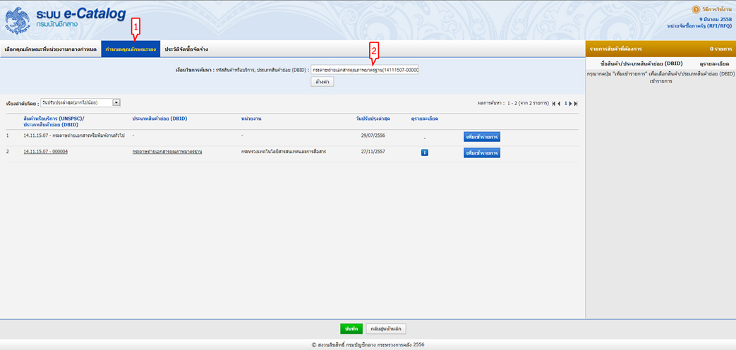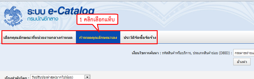 หน้ากำหนดคุณลักษณะเอง/e-bidding